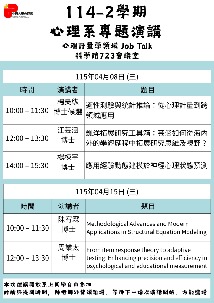 114-2學期心理系專題演講 -心理計量學領域 Job Talk