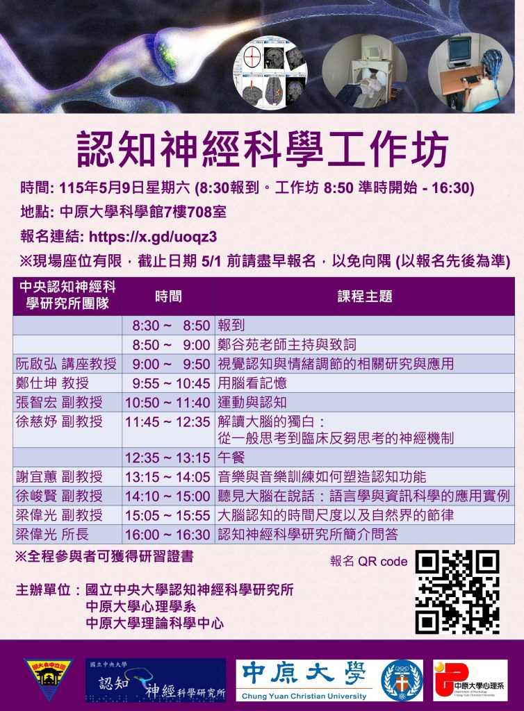 2026認知神經科學工作坊,報名時間自即日起至5月1日止